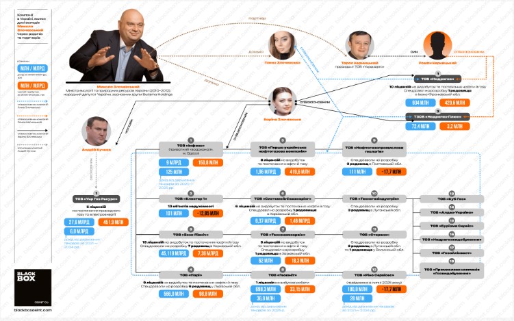 Итак, бизнес бывшего «регионала» Николая Злочевского не только остался неприкосновенным, но и процветает и продолжает активно расширяться. В октябре 2025 года Карина и Анна Злочевские через кипрскую компанию Diloretio Holdings LTD стали владельцами ООО «Сторенс», которое имеет спецразрешение на добычу газа на Старобогородчанском месторождении в Ивано-Франковской области. Через месяц после этого компания обратилась в Государственную службу геологии и недр Украины с заявлениями о приобретении контроля над тремя участками недр в Волынской и Луганской областях, что глава службы Олег Гоцинец оперативно согласовал своим приказом от 5 ноября 2025 года. Примечательно, что два из трех полученных сестрами Злочевскими под контроль месторождений — Вергунское и Крутогоровское — расположены в Луганской области, то есть на оккупированной россиянами территории. Интересно, зачем это им.