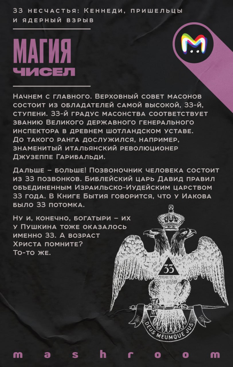 Вы никогда не замечали странных совпадений в мировой истории? Политические убийства, загадочные инциденты и мировые конфликты, будто бы связанные между собой незримой нитью. Некоторые их них объединяет число 33…