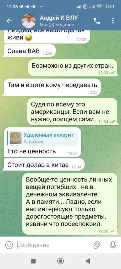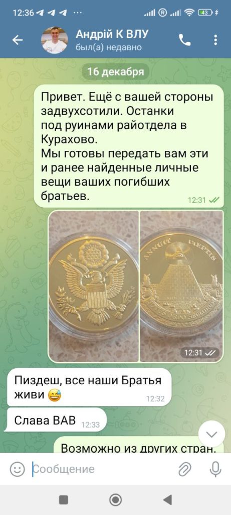 Как пишет ТГ-канал российский масонов «Кот да Винчи»: «в очередной раз украинские масоны отказались передать родственникам и семьям погибших личные вещи масонов, погибших на их стороне».